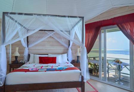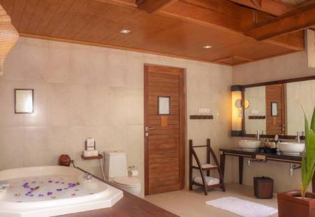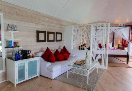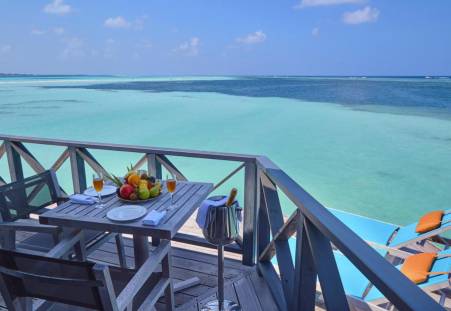 В атолле Лавиани на острове Kuredu находится прекрасный отель Kuredu Island Resort 4*. Перелет на остров на гидроплане с аэропорта Хулуле займет 40 минут, катером 3,5 часа. Прибывших гостей размещают на виллах в пляжной зоне и домиках на воде. В номерах интерьер выполнен в тайских традициях вместе со стилем модерн.